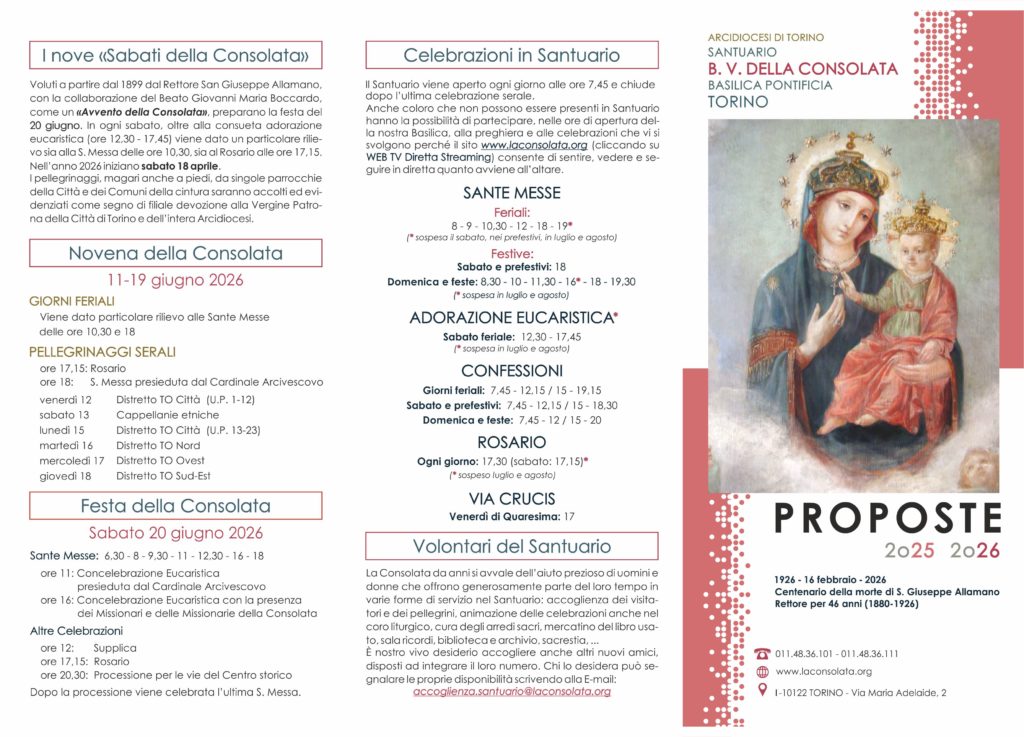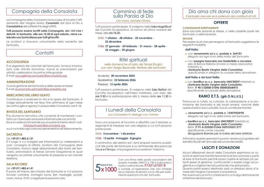 Le proposte del Santuario della Consolata per l’anno 2025 – 2026
